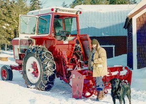 We were actually even closer to the land than we were in Nova Scotia. On our New Brunswick farm we had spring-fed water for our house. We continued to garden, added chickens, and a milk cow. However, we found a local butcher to do our annual steer. We were still on the edge of the grid. Our first winter we got twenty-three feet of snow. We saw weather as cold as minus forty with sixty mile per hour winds. We went back to mostly heating with wood, burning three to four cords per year in our much newer home which was only one hundred years old. It was cold enough that we unplugged our freezers in the shed which was attached to house so you could get wood without going outside. The first winter there I fed hay that had been put up with horses. One thing we did not do is fight snow with tiny all terrain vehicles. A couple of miles of road to keep clear required real snow removal equipment.