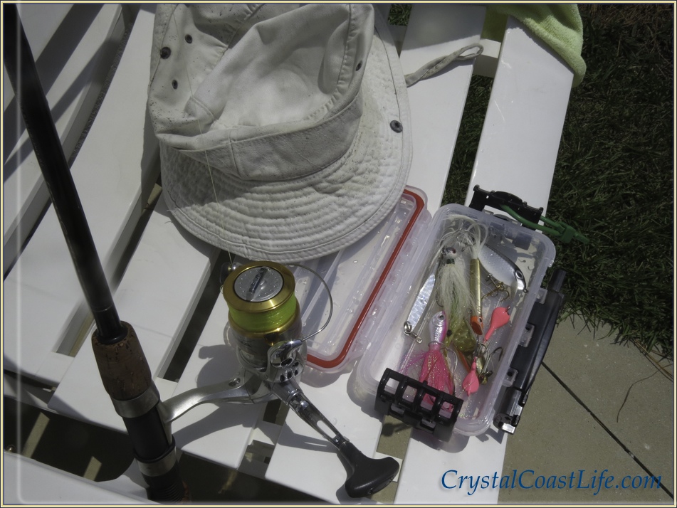 It takes a while to sort out your gear and travel as lightly as possible. This gear keeps changing but is pretty stable now after almost seven years of wandering the surf here on the Crystal Coast. Fishing with a heavy DSLR around my neck would be very hard so my Nikon stays at home. My Sony pocket camera recently died but someday I hope to have a small Nikon waterproof camera to replace my Canon and make fishing a little easier but that will have to stay on the wish list for now.
