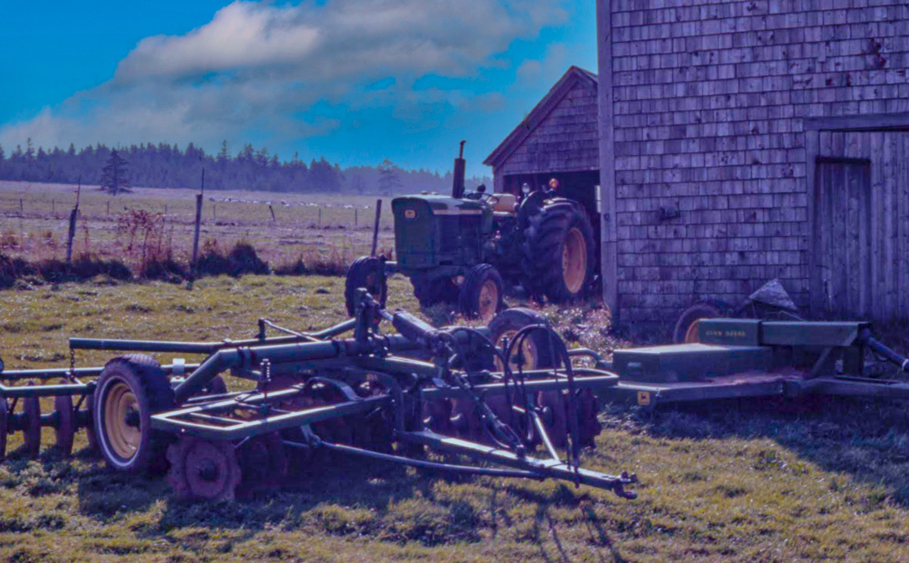 Our John Deere Equipment in St. Croix Cove, Nova Scotia, as the morning fog is lifting